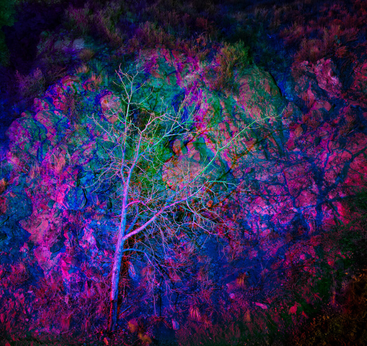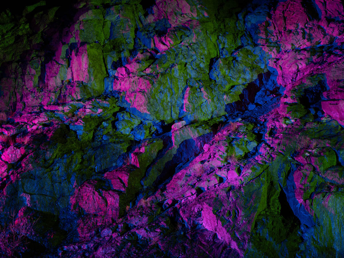I use trichromographs - an additive lighting process that I have developed - as a metaphor. Typically, photography observes the subject of the photograph - what we are looking at. Instead, in this work, I examine how we look.