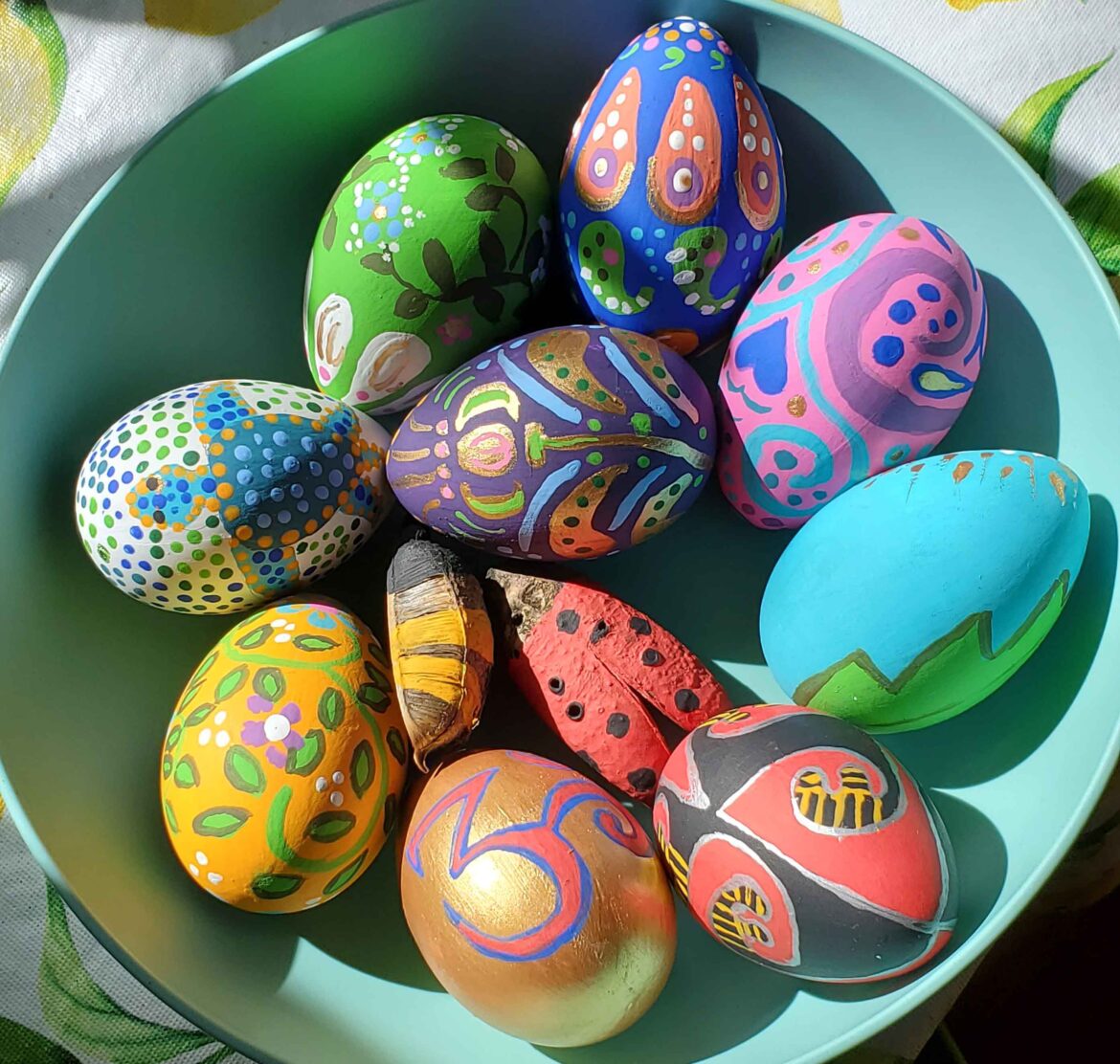 Pat was responsible for putting out on the Healing Waters Trail, painted stones with golden symbols during COVID. This brought joy to many..