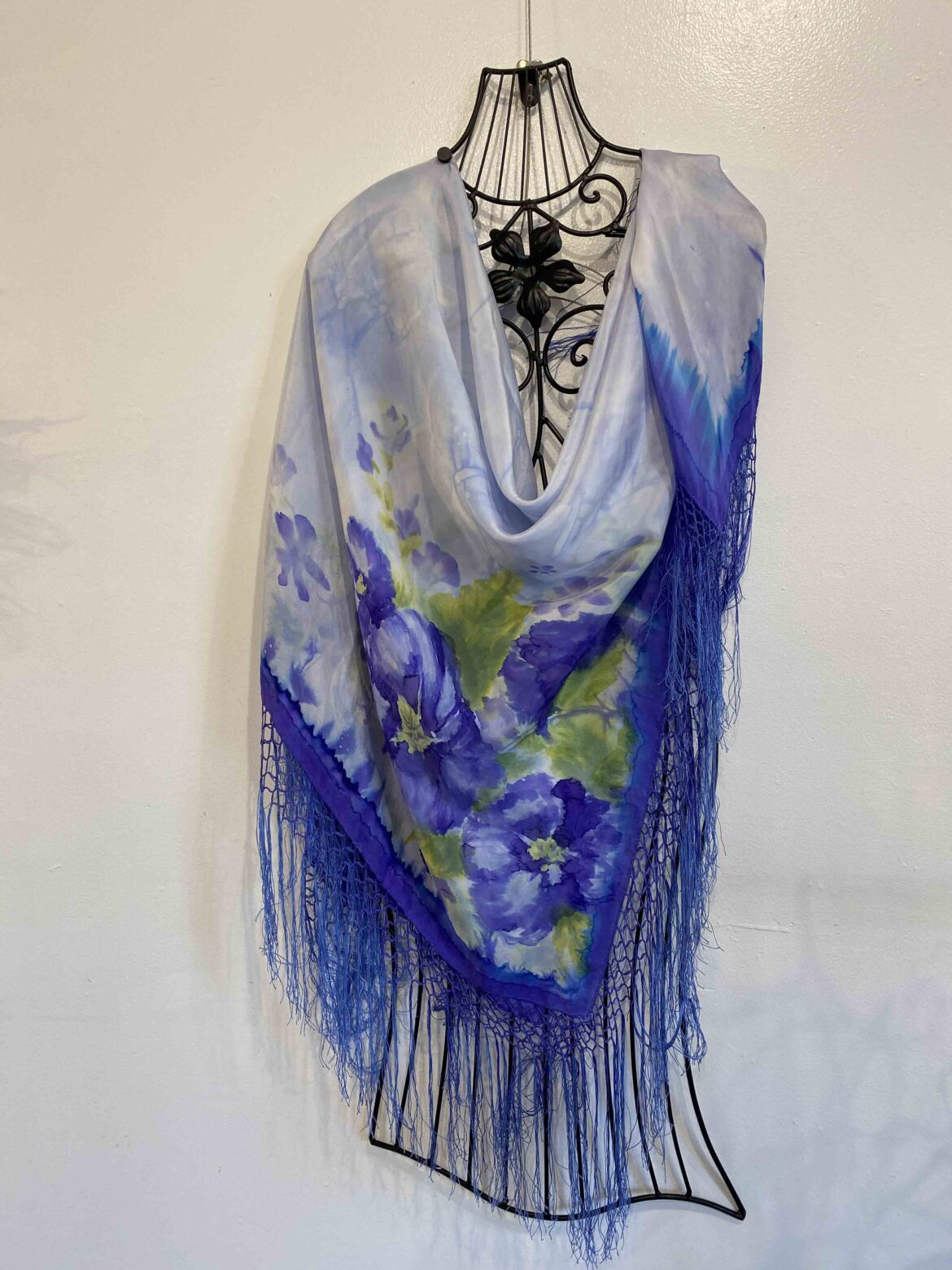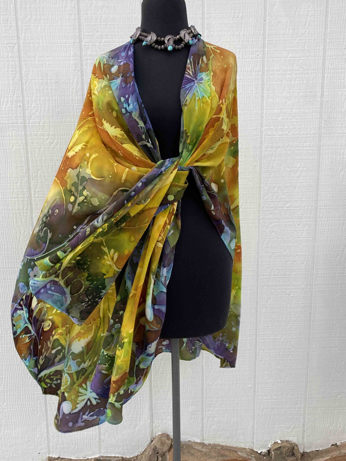 Grasshopper Silk Studio was established in 2005 by Sandy, who started working with dyes on silk in 2001. In 2006, she was invited to add her studio to the New Mexico Fiber Arts Trail. Evolving from simply dyes on silk, her techniques now include Nuno Felting. Her hand-painted silks are gently combined with wool roving to create thoughtfully crafted one-of-a-kind fiber art. She instructs fiber workshops and gives private lessons. In 2019, during a remodel, Sandy and David explored the possibilities of epoxy resin and have been busy creating unique epoxy/resin art. Passionate about the journey of creating art, they look forward to sharing with you during this year’s studio tour.