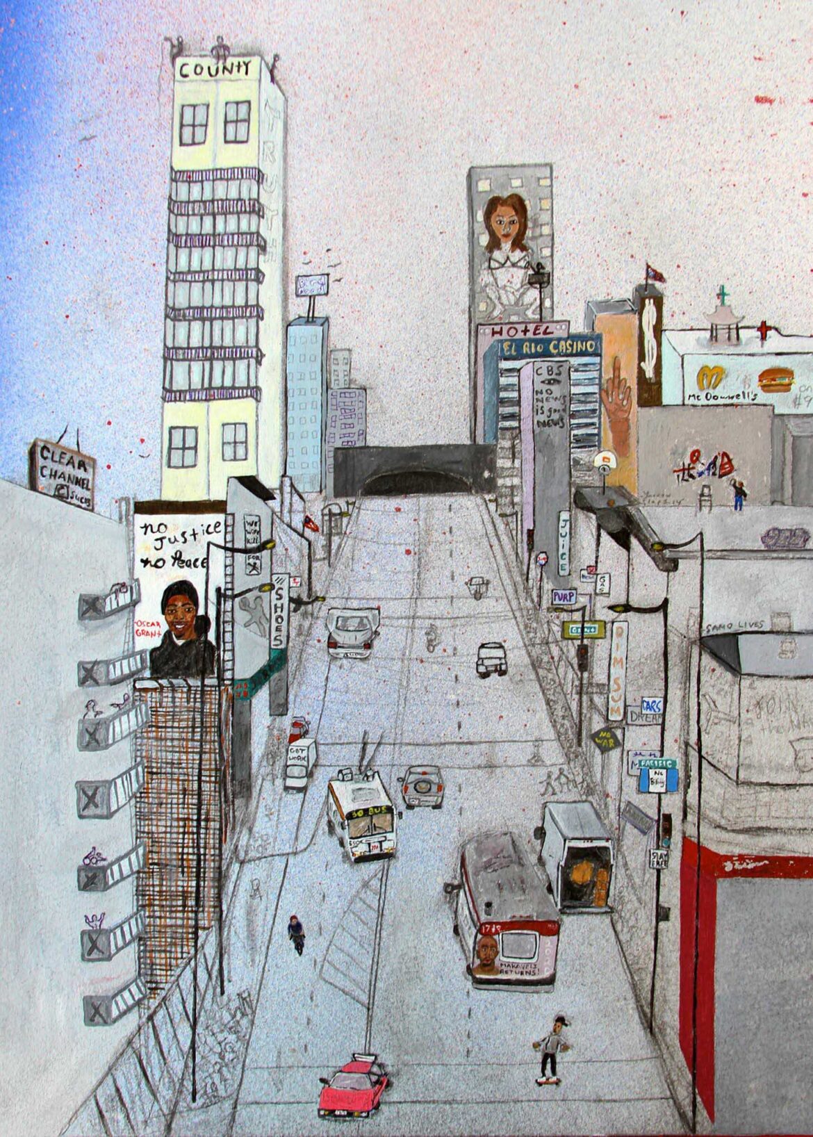 Yarrow Slaps is a San Francisco-born and based artist raised on the Bay Area’s multicultural politics, aesthetics, and practices. Operating at various D.I.Y. intersections, with an artistic, curatorial, and entrepreneurial approach to multimedia projects. His ethics and strategies are reflected in independently-produced projects like Ramen Forever’s blend of visual critique, writing and interviews to Lyfe In A Strange Land: a multi-genre collaborative film currently in production. -- Yarrow’s work involves deep research into race and culture. Studying the current cultural climate and finding ways to merge it with under recognized historical narratives, creating contemporary work woven within ancient fabric. -- Slaps has had Solo exhibitions at Wham Gallery, Galerie Wolfsen, De Young Museum, New Image Art, State Space & Guerrero Gallery. -- As curator of Swim Gallery, Yarrow works and connects with hidden, emerging, and overlooked communities of artists and other creatives who question and challenge the traditional institutions and relationships of the contemporary art world.